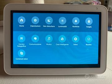 Echo Show 8 è un dispositivo che si connette ad Alexa, offrendo un suono stereo ricco e immagini vivide su un display HD da 8 pollici.