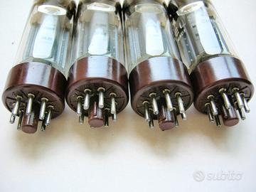 Quartetto di EL34A Shuguang usate poco ed efficientissime. Prima versione della EL34 cinese che differisce dall'ultima versione EL34B sia esteticamente che timbricamente. Questa prima versione, appunto la EL34A suona piu ariosa e dettagliata in stile Philips rispetto alla EL34B che invece è piu calda. Recentemente i cinesi hanno fatta una nuova versione .. (EL34PH), appunto su copia Philips, il che è tutto dire visti i costi assurdi e l' identica timbrica a questa prima versione... anche la struttura interna è identica..(Esempi validi per chi non conosce la differenza delle 2 varianti, ma anche per come VI percu...o alla grande.)