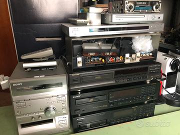 Ho messo una cifra simbolica ma vendo veramente a prezzo molto conveniente.Ad esempio gli apparecchi audio in ultima foto in blocco,TUTTI a soli €50;marche varie Technics-Sony-Pioneer e simili(sono da riparare o uso pezzi i lettori cd senza telecomandi),nel caso due sempre senza telec ma funzionanti a soli 10 in aggiunta se preso il blocco,oppure €15 cad.