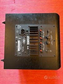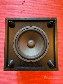 Subwoofer attivo 80/160 watt, altoparlante 8". in-out per satelliti passivi cubo 30x30x30cm altoparlante montato sotto.