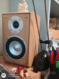 Causa esubero propongo coppia di diffusori della danese Eltax (esattamente come lo sono DALI, Audiovector, Dynaudio, Tangent Audio). Sono casse acustiche passive a 2 vie, con mid-woofer da 4" (10cm) avente sospensione in gomma che garantisce ampie escursioni e probabilmente il cono in alluminio (ma si tratta di una mia sensazione). Il tweeter è a cupola in seta morbida da 2,5 cm e magnete certamente in neodimio. Suono tipico delle casse danesi (dove sanno bene come si costruiscono le casse acustiche), e cioè timbricamente corrette, con equilibrio tra dettaglio e musicalità inaspettata per la classe del diffusore. Le dimensioni tradiscono l'estensione delle basse frequenze per il sistema Bass Reflex ben studiato ed ingegnerizzato. Il tweeter per il suono morbido e setoso sembra appartenere a diffusori di ben altra livrea. Da sempre le casse sono sulla mia scrivania in ufficio e stupiscono per la loro resa timbrica ed acustica pur se pilotate da un piccolo amplificatore in "classe D" della FOSI (NON compreso nella vendita) suonano in modo strepitoso jazz e sinfonica. Con il piccolo DAC "Topping E30" (NON compreso nella vendita) costituiscono nel mio caso, un raffinato impianto Desktop e regalano emozioni a costo contenuto. L'insieme, nella sua umiltà, fornisce qualità sonore straordinarie. Come si vede in foto, le casse le tengo su dei mattoncini che, oltre a costituire uno stabile e valido supporto, consentono di avere i tweeter all'altezza delle orecchie. Ovviamente provvisti di para-polvere in ottime condizioni. Condizioni estetiche e funzionali pari al nuovo. Spedizione disponibile a prova di Corriere.