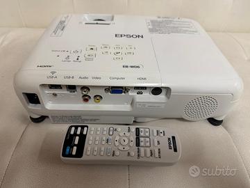 Come nuovo .... usato pochissimo - Epson EB-W06 Videoproiettore 3LCD WXGA 1280x800p, Luminosità 3700 lumen in bianco e a colori, Rapporto di contrasto 16.000:1, WiFi opzionale, HDMI EB-W06: Questo videoproiettore WXGA con luminosità di 3.700 lumen e tecnologia 3LCD è progettato per essere trasportato agevolmente, è anche facile da configurare e altamente competitivo grazie a un’ampia gamma di innovative funzionalità, oltre alla lunga durata della lampada Proietta in grande: Che si tratti di un film o di una presentazione, questo videoproiettore è in grado di proiettare immagini di grandi dimensioni fino a 320 pollici Immagini luminose e di ottima qualità: Efficiente e conveniente al tempo stesso, questo videoproiettore WXGA produce immagini luminose caratterizzate da colori splendente e dettagli nitidi, indipendentemente dalle condizioni di illuminazione; Il merito spetta alla tecnologia 3LCD, che assicura White Light Output e Colour Light Output di 3.700 lumen Lampada di lunga durata: Sei alla ricerca di una soluzione semplice, conveniente e affidabile per soddisfare le tue esigenze di proiezione? Configurazione semplice: Questo videoproiettore è stato progettato per poter essere trasportato con facilità e configurato rapidamente; La correzione trapezoidale consente l’allineamento dell’immagine proiettata, mentre gli ingressi HDMI assicurano un semplice accesso ai contenuti