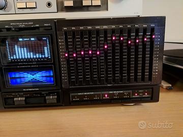 Vendo equalizzatore grafico Kenwood top di gamma 12+12 bande illuminate a led con effetto riverbero e reverse tutto testato funzionante, alcune scritte sono state sostituite con etichette adesive plastificate vedere foto per dettagli. Possibile spedizione con video dimostrativo dell'effettivo funzionamento oppure ascolto presso la mia abitazione. Specifiche tecniche Equalizzatore grafico stereo (1984-95) Livello di uscita: 1V (9V max) Risposta in frequenza: da 10Hz a 50kHz Rapporto segnale/rumore: 105dB Distorsione armonica totale: 0,005% Intervallo di controllo: ± 12dB Bande di frequenza: 16, 32, 63, 125, 250, 500, 1K, 2K, 4K, 8K, 16K, 32KHz Dimensioni: 440 x 163 x 350 mm Peso: 6,2 kg