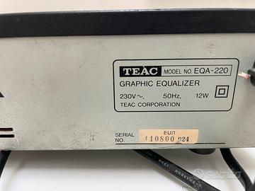 Equalizzatore grafico stereo a 10 bande per canale, ideale per amanti del vintage e dell’Hi-Fi. Ottimo per migliorare la risposta in frequenza del tuo impianto audio, con controlli precisi ed estetica classica TEAC.