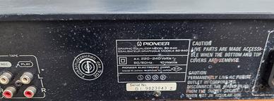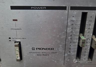 equalizzatore grafico vintage Pioneer SG-540. Funzione: Consente di modificare il bilanciamento delle frequenze audio per migliorare l'esperienza di ascolto. Controlli: Dispone di cursori per regolare bande di frequenza specifiche per il canale sinistro e destro separatamente. Caratteristiche: Il modello SG-540 è un dispositivo analogico spesso utilizzato in sistemi Hi-Fi vintage. funzionante