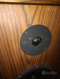 woofer 20 cm con sospensione pneumatica in gomma - 1 dome tweeter cm. 2,5 - frequenza di crossover 1.600 Hz - risposta in frequenza: 28 - 20.000 Hz - potenza massima 100 watt - impedenza nominale 8 Ω - sensibiltà 87 db (1mt) - nobile in noce -