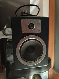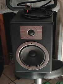 Vendo questi bellissimi monitor da studio, utilizzati in casa al 20% del volume massimo. Suonano davvero bene. Allego le foto e le specifiche tecniche. Si trovano a Milano. Features integral bi-amplified 70 Watt active near-field monitor 5 1/4" kevlar low frequency driver 1" silk-dome high frequency driver cross-over control optimizes performance in relation to placement magnetically shielded for desktop operation input connections: 1 XLR balanced & 1 TRS balanced/unbalanced input sensitivity: 200 mV input impedance: 30k Ohm balanced, 15k Ohm unbalanced Protection: RF interference, output current limiting, over temperature, turn-on/off frequency response: 60Hz - 22kHz crossover frequency: 3.2 kHz low frequency amplifier. 40W high frequency amplifier: 30W blue power LED on the front dimensions: 250mm (H) x 176mm (W) x 200mm (D) weight: ca. 6.5kg / speaker BACK