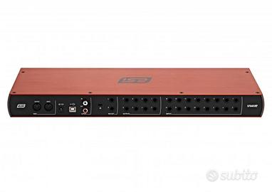 Vendo scheda audio 16 ingressi 8 uscite Esi U168XT come nuova, usata pochissimo completa di imballo originale, alimentatore originale e cavo usb. Info: Interfaccia audio ad alta velocità USB 2.0, 16 Ingressi / 8 Uscite a 24-bit - 96kHz 4 Preamplificatori microfonici professionali con supporto per alimentazione Phantom +48V 2 Ingressi strumento Hi-Z ad alte prestazioni con connettore da 1/4" Ingresso digitale S / PDIF con connettore RCA Uscita digitale S / PDIF con connettore RCA Supporta fino a 24 bit / 96 kHz 16 Ingressi di linea con connettori bilanciati TRS da 1/4" 8 Uscite di linea con connettori bilanciati TRS da 1/4" 2 Uscite cuffie indipendenti con connettore stereo da 1/4" Uscita stereo separata con mixer monitor integrato controllato dal pannello frontale ADC con gamma dinamica 107dB (a) DAC con gamma dinamica di 112dB (a) 16 Canali MIDI I/O con un ingresso MIDI ed un uscita MIDI Alimentatore incluso Supporta Windows Vista, Windows 7, Windows 8.1 e Windows 10 con ASIO 2.0, MME, WDM e DirectSound incluso il supporto DirectWIRE Supporta Mac OSX (10.7 e versioni successive) tramite il driver audio CoreAudio USB Include la licenza di Deckadance LE di Stanton Include il software Bitwig 8-Track per workstation audio digitali Include la licenza di inTone 2 ESI Edition di Audified Dimensioni: 450 x 145 x 45mm