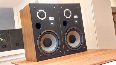 -DISPONIBILI- Infoline Whatsapp: 3319906753 Casse acustiche Made in USA ESS model 10 anno 1978, in condizioni magnifiche altoparlanti originali, nessuna modifica EURO 400 Sistema a 2 vie bass-reflex Woofer 250 mm, cono in fibra resinata, sospensioni in foam sostituite ad Aprile 2026 Tweeter 25 mm, cupola in Mylar impedenza 6 ohm efficienza 90 db potenza di utilizzo 80 watt dimensioni 560x320x350mm peso 14kg cad. Nel solco più verace dell'elettroacustica statunitense, è il momento di ESS: un brand californiano relativamente di nicchia, che in passato ha prodotto cose eccellenti e che è rimasto nel cuore di molti appassionati americani. Chi scrive, pur avendo il chiodo fisso per “timbrica ed ariosità”, non nasconde che nel secondo impianto i diffusori bookshelf dal cuore generoso sono indispensabili; forse anche per una sorta di conferma della necessità del chiodo fisso sopracitato. Queste Model 10 si presentano con un aspetto molto americano e, seppur prive del delicato tweeter a fisarmonica che ha fatto la fortuna del marchio, vedono un bel tweeter con cupola in Mylar, un materiale dall’ottimo rapporto costi/benefici, mentre i robustissimi mobili hanno una fattura sovradimensionata destinata a durare in eterno. Concludendo l’analisi visiva, crossover e woofer sono il chiaro fotogramma di un diffusore prodotto in California nel 1978. Alla prima audizione, Model 10 riportano la memoria ai tradizionali diffusori reflex yankee di stampo JBL del periodo, ma a differenza di queste ultime non ci si alza dopo mezz’ora per abbassare il volume o attenuare le alte frequenze. Va tutto liscio insomma, senza che il cervello ci dica “adesso basta, fai qualcosa!” Anche se non ve le mandano a dire, queste ESS non risultano aggressive e sono a loro agio con i generi musicali più diversi: si passa quindi da Chopin ai Led Zeppelin con estrema naturalezza. L’America che non fa male a nessuno, né alle orecchie né alle tasche.