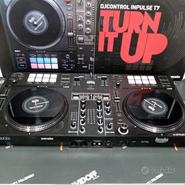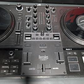 CONTROLLER DJ 2 CANALI CON INTERFACCIA AUDIO USB Sei un aspirante DJ che vorrebbe iniziare a suonare con i vinili? Hercules DJControl Inpulse T7 è il controller DJ motorizzato perfetto per aiutarti a compiere i tuoi primi passi per arrivare a padroneggiare l’arte dei giradischi in vinile! Questa versione moderna di un così classico strumento combina le sensazioni genuine dei veri dischi in vinile con i benefici della tecnologia digitale. Con 2 piatti motorizzati per dischi da 7”, in grado di passare da 0 a 33⅓ giri/min in appena un decimo di secondo, puoi allenarti nei mix DJ con i vinili e goderti le autentiche sensazioni dei veri giradischi. Il disco in vinile, il tappetino per giradischi e il piatto, tutti separati, ti permettono persino di rimuovere il disco in vinile, dandoti il pieno controllo durante le tue esibizioni. Hercules DJControl Inpulse T7 è stato progettato per offrirti sensazioni simili a quelle dei giradischi in vinile: puoi mixare, effettuare il beatmatch o scratchare con facilità. Puoi rallentare o accelerare la riproduzione sfruttando l’etichetta del disco in vinile o l’anello attorno al piatto, oltre a riprodurre o a mettere in pausa poggiando le tue dita sul disco in vinile o sollevandole. Il controller DJ è stato realizzato impiegando materiali autentici, come un disco in vinile, un tappetino per giradischi e piatto in metallo, oltre alle dimensioni standard del disco in vinile, da 7" / 17,8 cm, asse centrale da 0,286 pollici / 0,7 cm e fader del tempo da 3,9"/ 10 cm. l controller dispone inoltre di connettori audio pensati per le esibizioni live. Il mixer centrale dispone di 3 manopole EQ, una manopola Guadagno e una manopola Filtro per banco, oltre a un fader del volume per banco, un VU meter per banco, un crossfader e un VU meter Master, con l’area Effetti al centro, per un layout da autentico mixer.