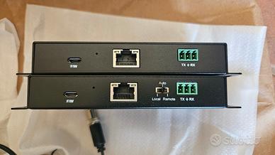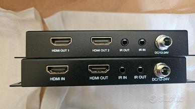 Il trasmettitore ha il loop dell'ingresso per un monitor locale e il ricevitore ha una doppia uscita video.