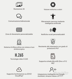 Ottima per qualità e funzionalità, la telecamera H3c 2K è stata progettata per garantire una protezione intelligente dell'ambiente domestico senza interruzioni 24 ore su 24, 7 giorni su 7. Funzionando come protezione esterna per la casa, la telecamera riprende video incredibilmente nitidi in 2K anche in visione notturna a colori ed è in grado di rilevare la presenza di persone e garantire una difesa attiva. Di dimensioni compatte e resistente alle intemperie, H3c 2K si rivela la telecamera di sicurezza ideale per la casa.