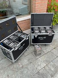 Vendo fari a batteria smartbat della prolights. Sono 2 bauli flight case da 6 fari l’uno completi di cavo per ricaricarli. Quindi totale sono 12 fari. Durata delle batterie piu di 10 ore. Sono rgbw, posso essere comandati tramite telecomando, in modalita automarica e statica. Chiedo 1200 euro a baule. NO PERDITEMPO.