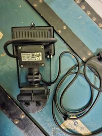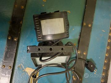 Vendesi faretto luce da esterni con sensore di movimento. si attacca alla corrente con presa tripla normale, cavo lungo circa 2 m.