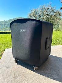 Vendo come da titolo questo spettacolare subwoofer attivo da 18” e 900 watt rms. Amplificatore in classe AB (da intenditori) e cassa progettata in Passa Banda. Woofer e amplificatore originali fatti revisionare nel 2025. Funziona alla perfezione, da sentire di persona 💣 750€ poco trattabile. Compresa nel prezzo Cover originale FBT e ruote per agevolare il trasporto (ruote gia applicate al sub). Non spedisco! Solo veramente interessati FBT HIMAXX 100SA Descrizione prodotto: Subwoofer amplificato Passa-Banda, Woofer B&C custom da 460mm (18”) al neodimio con bobina da 75mm (3”), Amplificatore interno da 900Wrms PWM, Alimentatore switching, Processore analogico di segnale con limite, Pannello dei controlli con:Input XLR stereo, link XLR ed uscite XLR stereo filtrate Hi-Pass per collegamento satelliti, Volume, Ground-Lift, Commutatore di phase 0°-180°, Led limiterBox in multistrato di betulla da 18mmIl particolare caricamento acustico ‘passa-banda’ aumenta l’efficienza e l’SPL massimo8 punti di ancoraggio M10, supporto per stativo e 2 maniglie integrate in legno, Predisposto per montaggio di 4 ruote opzionali Ø 80mm. Caratteristiche techniche: Woofer B&C custom da 460mm (18”) al neodimio con bobina da 75mm (3”) Amplificatore interno da 900Wrms PWM Alimentatore switching Processore analogico di segnale con limiter Input XLR stereo, link XLR ed uscite XLR stereo filtrate Hi-Pass per collegamento satelliti Volume Ground-Lift Commutatore di phase 0°-180° Led limiter Box in multistrato di betulla da 18mm Il particolare caricamento acustico ‘passa-banda’ aumenta l’efficienza e l’SPL massimo 8 punti di ancoraggio M10, supporto per stativo e 2 maniglie integrate in legno Predisposto per montaggio di 4 ruote opzionali Ø 80mm