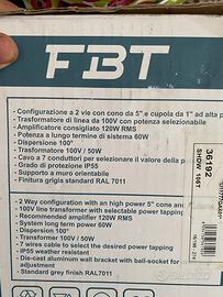 Vendo per cambio progetto altoparlante FBT shadow 105t mai installato . Ha una protezione IP55 quindi può esser installata anche esternamente .