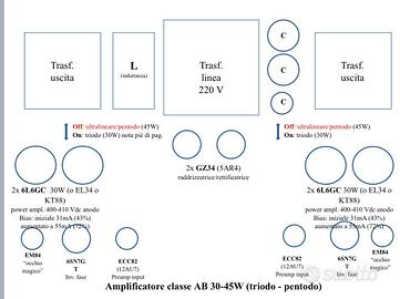 Vendo stupendo amplificatore a valvole Push-Pull classe AB1 progetto Luxman. Costruito da artigiano dí Milano con grande esperienza. Funzionamento a triodo 30 what a tetrodo 45 what. In corredo il suo strumento per la regolazione del Bias valvole da rodare.