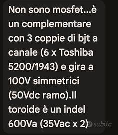 per passaggio alla classe A pura cedo questo stupendo esemplare di amplificatore finale AB DA 180WATT PER CANALE.