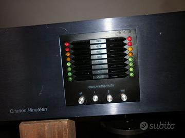Harman Kardon Citation Nineteen 19 ,amplificatore finale stereo americano, made USA, 100+100 W per canale su 8 0hm, può funzionare a ponte selezionabile da tasto posteriore 330W su 8 0hm, ottime recensioni in rete, scambio solo con finali Mark Levinson ,Classè Audio, Rowland, Spectral, Aragon, Bryston, PS Audio , Plinius piu conguaglio da parte mia da concordare, possibilità di ascolto, perfettamente funzionante