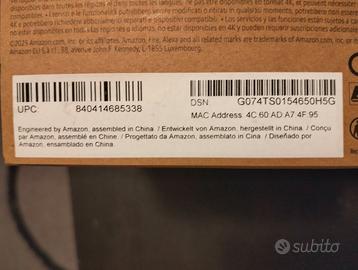 FIRE TV STICK 4K PLUS - AMAZON NUOVO - SIGILLATO Dispositivo per lo streaming con supporto per Wi-Fi 6 ATTENZIONE: NON è SELECT !!! SENZA LIMITAZIONI !!!!!!!!!!!! Streaming 4K all'avanguardia: arricchisci il tuo intrattenimento e goditi migliori prestazioni di streaming con l'ultima generazione del dispositivo Fire TV 4K PLUS più venduto. Supporto Wi-Fi 6: goditi una riproduzione in streaming 4K fluida, anche quando ci sono più dispositivi connessi al router. Vivi il cinema a casa tua: immagini brillanti in qualità 4K Ultra HD, con supporto per il formato Dolby Vision, HDR10+ e l’avvolgente audio Dolby Atmos. Intrattenimento senza limiti: goditi la visione di migliaia di film ed episodi di serie TV. Guarda i tuoi contenuti preferiti su Netflix, Prime Video, Disney+ e altri. Potrebbe essere necessario un abbonamento separato. Accendi la TV e immergiti in un mondo di intrattenimento gratuito dalle app di streaming, supportate da annunci pubblicitari, come Twitch e Pluto TV. Telecomando vocale Alexa: cerca, avvia e controlla rapidamente i contenuti con la tua voce. Trova le tue app preferite con i pulsanti preimpostati. Accendi, spegni la TV e regola il volume con un unico telecomando. Sfrutta al massimo la tua Casa Intelligente: controlla i dispositivi compatibili, come videocamere, luci e molto altro. Premi e chiedi ad Alexa le previsioni del tempo o di abbassare le luci.