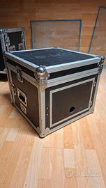 Vendo flight case rack 19” da 6 unità (6U) con piano superiore apribile, perfetto per ospitare mixer audio/luci, controller, laptop o regia compatta.