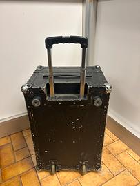 Flight case trolley full black con maniglia telescopica estraibile e ruote integrate.
