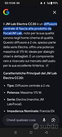 MAGNIFICO E PRESTIGIOSO CANALE CENTRALE FOCAL JM LAB CON CONI TECNOLOGIA " W" ,ORMAI UTILIZZATI SOLI NELLA LINEA UTOPIA!! CONDIZIONI IMPECCABILI ,SIA ESTETICHE CHE DI FUNZIONAMENTO. QUALSIASI PROVA AL MIO DOMICILIO. DIMENSIONI E PESO IMPORTANTI. POSSIBILE SPEDIZIONE. PREZZO LEGGERMENTE TRATTABILE