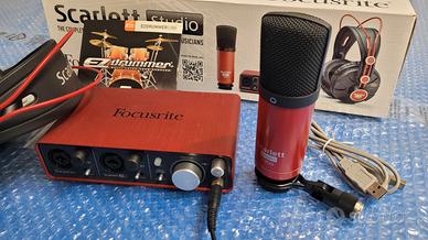 Scarlet 2i2 + CUFFIA + MICROFONO con supporto dedicato e cavo USB, IL TUTTO PARI AL NUOVO. Compresa scatola, CD SOFTWARE BUNDLE e manuali. Ottimo per YOUTUBER, qualità del suono ottima sia microfono che cuffie, driver FOCUSRITE sono una garanzia di stabilità ed affidabilità