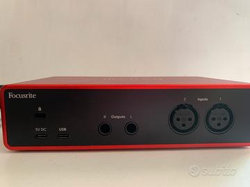 Vendo Scarlett 2i2 di 4a generazione, scheda audio perfetta per gli home studio, in dotazione anche il cavo sia per collegarla alla corrente che per collegarla al computer, la scheda non presenta alcun tipo di difetto, vendo per inutilizzo