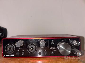 Scheda audio ottima Focusrite Scarlett 2i2 come nuova senza cavi. Imballaggio sicuro purtroppo non in scatola originale