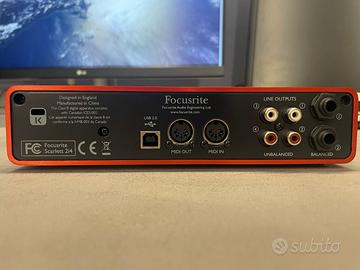 Interfaccio audio USB 2 in / 4 out con due preamplificatori Focusrite di alta qualità e uscita cuffie separata.