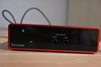 scheda audio focusrite senza scatola + cavetto e jack 24 bit / 192 kHz 1 x preamplificatore per microfono Scarlett Alimentazione Phantom +48 V Funzione aria commutabile 1 ingresso microfono: XLR
