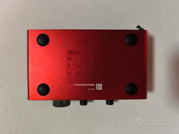 Vendo Focusrite Scarlett Solo (terza generazione), usata una volta, in condizioni eccellenti, completa di scatola originale, cavo USB (A–C) e documentazione.
