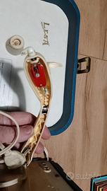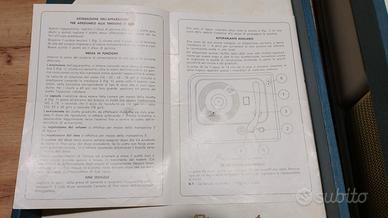 FONOVALIGIA LESAPHON LESA DIAMANTE modello 52 - B, giradischi anni '60, completa di libretto delle istruzioni ed in ottimo stato come da foto. Funzionante, dopo qualche secondo che è accesa si sente un suono forte e fisso dall'altoparlante, una interferenza, probabilmente un condensatore - filtro da cambiare.