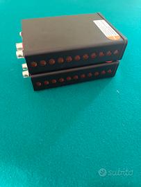 Due finali mono Fosi V3 con due alimentatori 48V 10A, acquistati il 10 febbraio 2026. Contenitori, imballaggi, custodie manuali e cavi alimentazione originali. Funzionanti, nessun difetto e/o imperfezione. Vendo per passaggio a amplificazione più potente. Prezzo intrattabile.