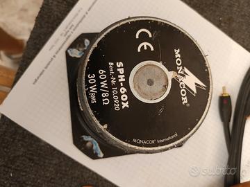 come da titolo vendo 4 full range Monacor 8 ohm, bicono in carta cestello in lamiera d' acciaio, magnete in ferrite