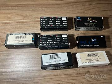 Diversi fusibili Synergistic Research, alcuni sono perfetti altri presentano l'adesivo della Synergistic Research un pò rovinato , dipende dall'attrito che ha il fusibile nel portafusibile dell'elettronica a cui è viene inserito. Valori e modello perfettamente leggibili su tutti i fusibili. Vendo gli SR 20 35,00euro cadauno, il Red 50,00 euro e il Blue 80,00 euro. - SR 20 T 2.5A 5x20mm - SR 20 F 10A 5x20 mm - SR 20 T 250mA 5x20mm - SR 20 T 4A 6x30mm - SR 20 T 8A 5x20mm - RED T 315mA 5x20 Non rispondo ad offerte a ribasso, grazie.