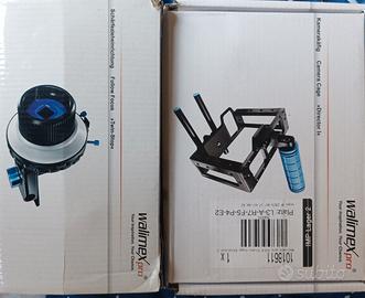 Vendo gabbia universale Wellimex Pro, compatibile con svariati dispositivi di ripresa (mirrorless, dslr, videocamere ecc..) , comprensiva di maniglia e piastra sottostante per innesto roods (forniti). Assieme vendo follow focus della stessa ditta. Materiale perfetto, praticamente mai utilizzato. Scatole originali.