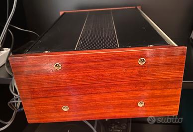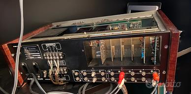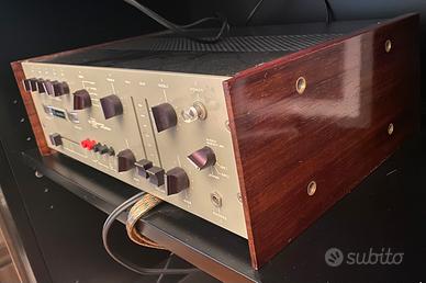 Galactron MK 10 prima serie 1971 , esemplare unico, funzionante perfettamente , collaudato da me alla nascita , rivisto, controllato e ricollaudato da me ultimamente , non molto usato . 5 ingressi , di cui 2 per piatti con 2 schede RIAA, passaggio in dissolvenza tra il 1* e 2* piatto, regolazione toni alti e bassi canale A e B , presa cuffie, commutatore per uscite casse A/ B , A + B e fhono. Rele’ di protezione alle casse per non sentire il botto