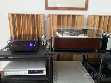 Giradischi Garrard 301 oil bearing, montato su base in legno e completo di adattatore 45 giri originale, clamp pressa disco in metallo e cappa parapolvere in plexiglass