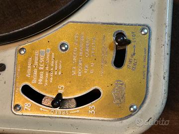 Giradischi automatico a tre velocità, simile al modello Garrard RC80, con possibilità di funzionamento manuale e regolazione della velocità di ± 2,5%. Capacità: 10 dischi di un unico formato, 10 o 12 pollici a 78 giri/min, 7, 10 o 12 pollici a 33⅓ giri/min e 7 pollici a 45 giri/min. Fornito con tre perni: uno per dischi a 45 giri con foro largo, un perno inclinato a gradini per tutti gli altri tipi di dischi e un perno corto per la riproduzione manuale, oltre a un adattatore per la riproduzione manuale di dischi a 45 giri con foro largo. Dotato di braccio di lettura in alluminio pressofuso con connettore a 3 pin e portatestina a innesto. Adatto per l'uso con tensioni di 100-130 volt e 200-250 volt CA a 50 o 60 Hz . Tutto funzionante ma e sporvista di testina e shell .