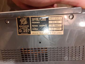 Vendo il registratore della Geloso modello 257, ritrovato in armadio. Si presenta abbastanza bene vista l’età, ha una modesta crepa nella chiusura dello sportello che comunque avviene senza problemi (vedi foto). Il nastro all’interno non è compreso nella vendita. Non garantisco il funzionamento in quanto ho timore nel provare a riavviarlo. Ottimo per oggetto da esposizione, vetrine negozio o da esporre in casa. Consegna a mano in zona Bologna altrimenti spedisco con TuttoSubito.