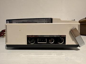 Registratore a bobine Geloso modello G570 in ottime condizioni e perfettamente funzionante. Completo di cavo di alimentazione, microfono dinamico originale Geloso T16 con il suo cavo e custodia in pelle marrone originale Geloso con tracolla e chiusura. Tutte le funzioni sono testate: le due velocità di nastro (9,5 e 4,75 cm/s) funzionano regolarmente, il motore è stabile e i comandi play, stop, rewind e record rispondono correttamente. L'estetica è molto buona, senza danni o crepe, solo lievi segni del tempo. Il microfono T16 è funzionante e ben conservato, la custodia in pelle è integra e completa. Apparecchio originale non modificato, adatto a collezionisti o a chi cerca un registratore Geloso vintage ancora operativo e completo dei suoi accessori. Il registratore può essere alimentato anche a batterie, ma non le possiedo e quindi non comprese nella vendita. Per maggiori foto o informazioni contattare.