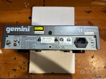 Vendo gemini cdj1100, lettore CD/MP3 professionale con jog wheel sensibile, pitch control ±16%, master tempo, display LCD retroilluminato, funzione cue/manual/auto cue, seamless loop, pitch bend, supporto per CD, CD-R e MP3, uscite audio RCA e modalità di lettura FAT32. Collegandolo si accende il display e si apre lo slot cd, ma non è stato testato, incluso cavo di alimentazione, presenta segni di usura, sullo schermo e sulla lettera "G" sono presenti delle pellicole di plastica