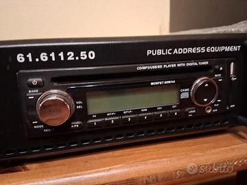 disponibile gemini 61.61.6112.50 sintoampli cd mp3. public adress equipment. ideale per bar ristoranti negozi . si possono collegare sorgenti e microfoni. 6 canali per diffusori a 70w e 100w.in ottime condizioni. peso circa 10 kg. prezzo 75 euro.
