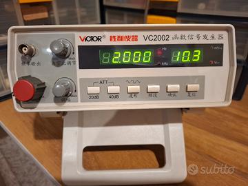 Generatore di funzioni Victor VC 2002 frequenze da 2 hz a 2 Mhz, tensione di uscita max 10,8 volt, 3 forme d'onda Sinusoidali. Triangolari, Quadre. le condizioni sono ottime, solo qualche piccolo segno superiore lasciati da oggetti poggiati sopra, vedi foto 4, il prezzo del nuovo è di circa 1 8 0 e. inoltre ho una confezione di profumi Chanel una di ciglia magnetiche e due piastre per capelli mai aperte o usate a 110 e, cioe 50+60 eper chi acquista tutto la spedizione è gratuita. ulteriori foto a richiesta
