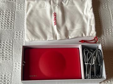 Aperto per metterlo in funzione una volta,come nuovo sistema audio portatile all-in-one del marchio svizzero Geneva Design: Ispirato ai classici orologi da viaggio, è racchiuso in un elegante cofanetto a conchiglia in ecopelle che funge anche da supporto quando aperto. Connettività: Include la connettività Bluetooth per lo streaming wireless da smartphone e tablet. Funzioni Integrate: Oltre ad essere un altoparlante, integra una radio FM digitale con antenna estensibile e una sveglia (alarm clock). Audio: Presenta un sistema di altoparlanti 2.1 con amplificatore digitale e analogico, progettato per offrire un suono di alta fedeltà per le sue dimensioni compatte. Portabilità: È alimentato sia da rete elettrica che da una batteria ricaricabile integrata (durata di circa 5 ore), ideale per i viaggi.