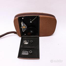 Geva 8 Carèna videofotocamera vintage,cinepresa 8 mm. anni 50 con corpo in metallo con un design deco unico. La fotocamera ha un obiettivo Som Berthoit