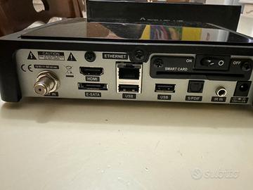 Il dispositivo offre un'ampia gamma di opzioni di connessione, come mostrato nelle foto. È usato e perfettamente funzionante. Solo la superficie laccata presenta i soliti e inevitabili segni di polvere. Sono inclusi un alimentatore, il telecomando originale e un manuale di istruzioni.