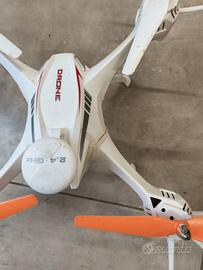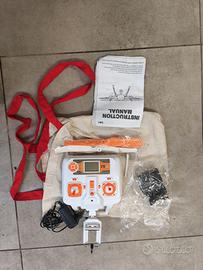 giocattolo drone con videocamera come da foto funzionante ma con parti in plastica della scocca incollate o da riparare. Completo di telecomando e telecamera mai montata
